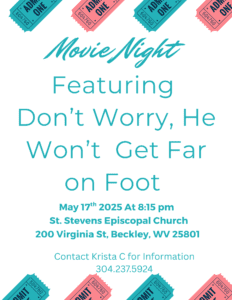Join us for an AA Movie Night, 5/17 8:15 PM at St. Stephens Episcopal Church! We will be watching ‘Don't Worry, He Won't Get Far On Foot’.